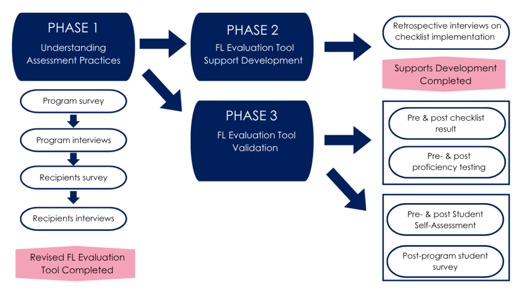 In Phase 1, we will first conduct two large-scale surveys and follow-up interviews with FLAS Program Administrators and fellowship recipients.